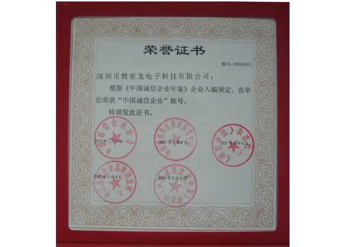 精密龍榮譽證書